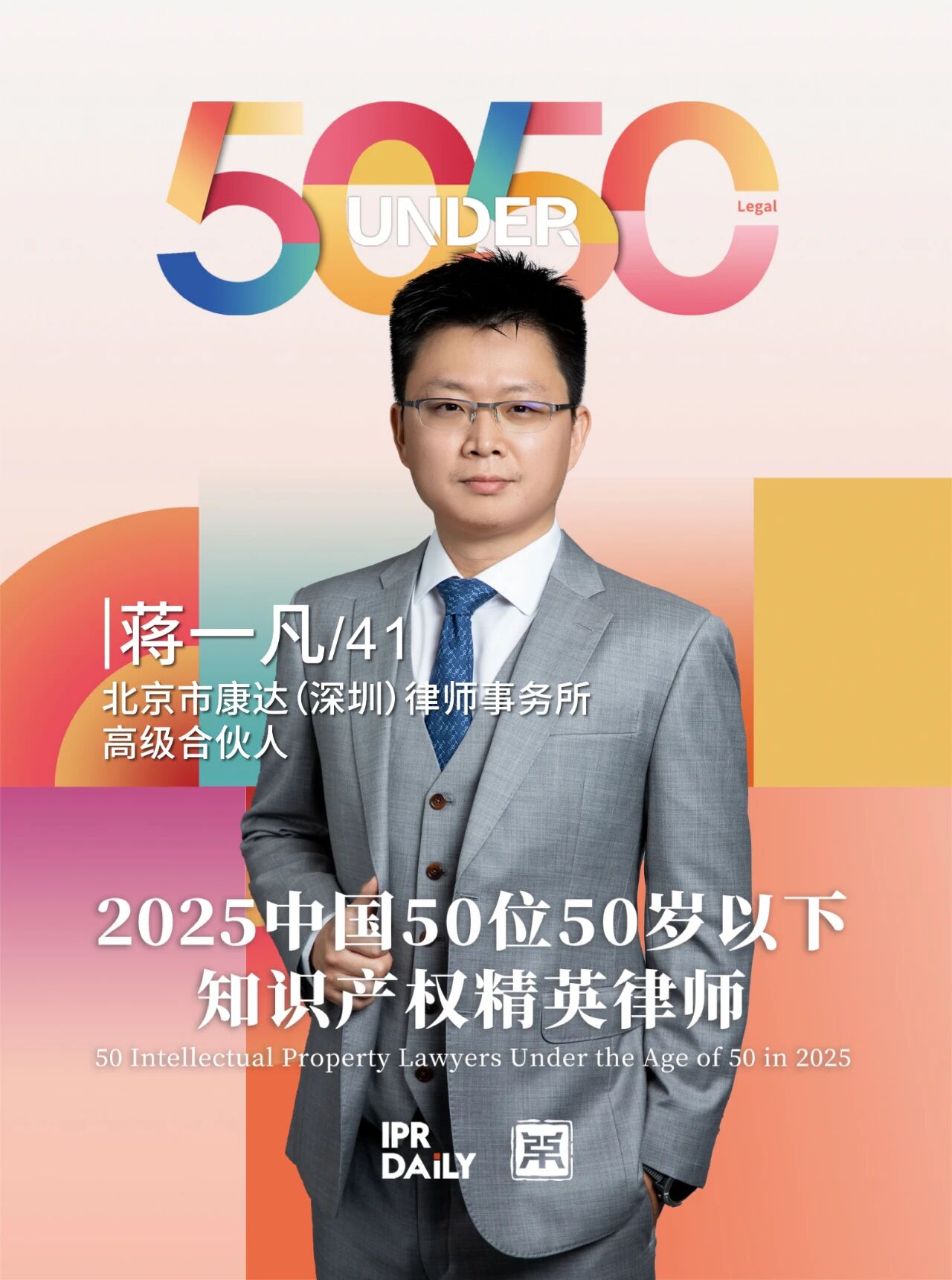 康达高级合伙人蒋一凡荣登IPR Daily2025年中国“50位50岁以下知识产权精英律师”榜单
