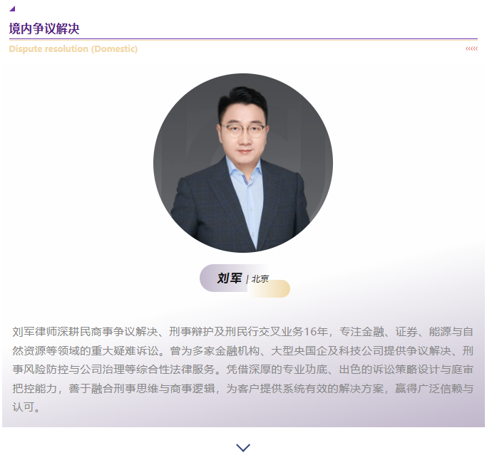今日,《商法》(China Business Law Journal)公布“The A-List法律精英”2025-26中国业务律界精锐(Growth Drivers)榜单,我所高级合伙人刘军、裴银州、张琪炜、陆彤彤律师,长沙分所合伙人周争平律师分别在五个领域入选。