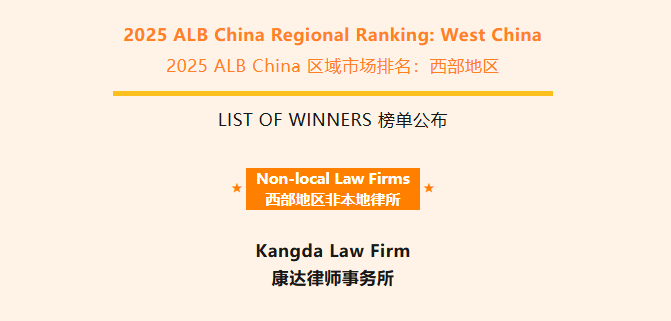 近日,汤森路透旗下高端法律媒体《亚洲法律杂志》(Asian Legal Business,简称 “ALB”)公布了 “2025 ALB China 区域市场排名:西部地区” 榜单。康达凭借强劲的区域法律服务实力、业内口碑及市场表现,连续三年荣登 “西部地区—非本地律所” 榜单。