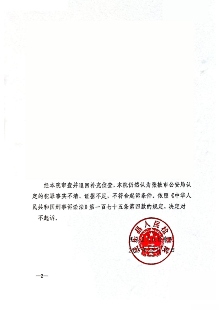案件结果:存疑不诉,案结事了